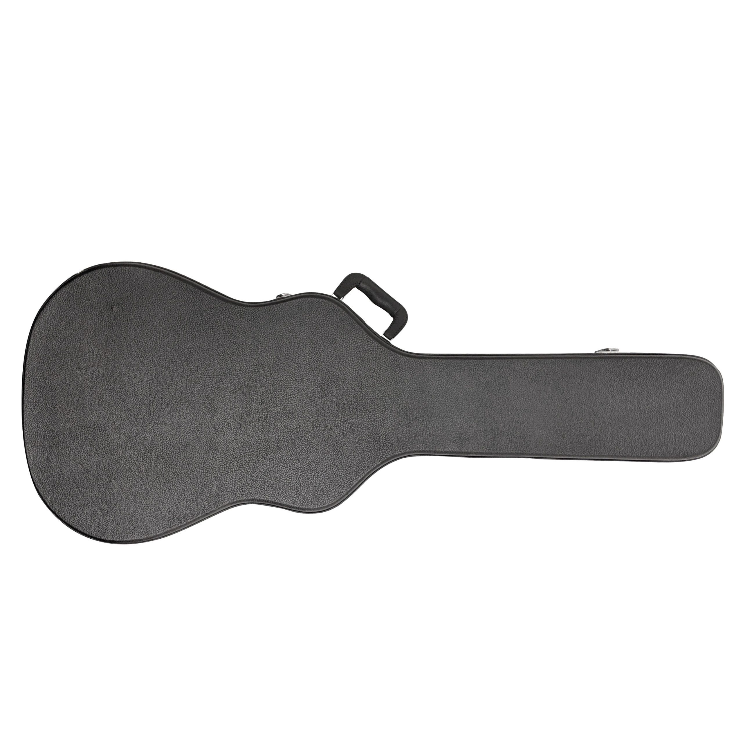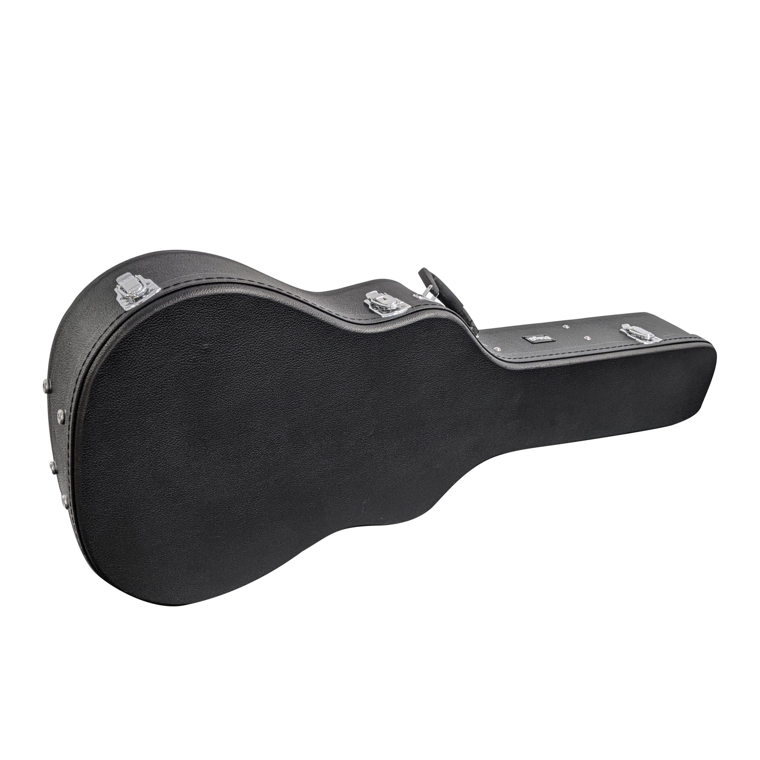 Tvarovaný kufr pro akustickou kytaru. Dřevěná kostra kufru je potažena černým vinylem. Vnitřek kufru je vyložen plyšovou výstelkou pro maximální ochranu nástroje. Praktická schránka na příslušenství, chromované zámky, pevné ucho. Dopřejte Vašemu nástroji pohodlí a bezpečí!
